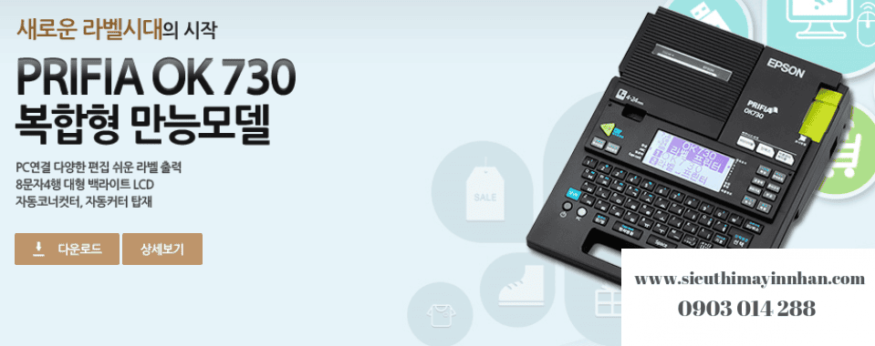 비즈니스 서식 탑재「바인더 라벨」, 「비품관리」 등 비즈니스 실무에서 자주 사용하는 라벨을 쉽게 만들 수 있습니다. 기호 및 이모티콘 추가, 바코드/QR코드 인쇄약식 연도 또는 「DVD 마크」 등 파일/미디어 정리에 필요한 기호나 「환경 이모티콘」, 「휴대전화 스타일 이모티콘」도 신규 탑재했습니다. 또한 8종류의 바코드, QR코드 및 연속인쇄, 연번인쇄가 가능합니다. 새로운 디자인 양식편리하게 사용할 수 있는 디자인 양식을 100개 이상 탑재, 한글과 영문을 조합한 한영 병기가 가능하여 「쓰레기 분리, 매장 POP, 주의환기」 등 다양한 상황에서 폭넓게 활용할 수 있습니다.완전 한글화된 전용 편집소프트웨어를 제공하여 OK730은 휴대용 및 PC용 두 가지 형태로 활용할 수 있는 복합형 모델입니다. PC에 연결(USB)하면 전용 편집소프트웨어를 이용해 손쉽게 라벨을 작성할 수 있습니다.
