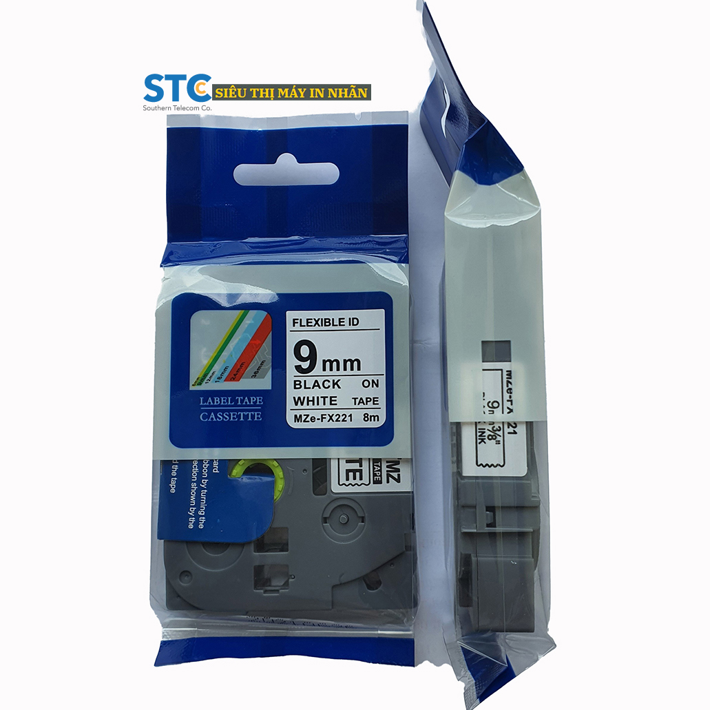 Black on White – Chữ đen , nền trắng / khổ rộng 9mm