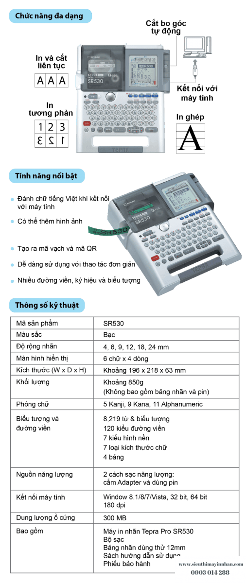 – Đánh chữ tiếng Việt khi kết nối máy tính, chèn hình ảnh , in mã vạch và mã QR...